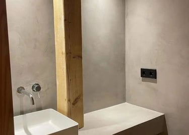 Revestimientos decorativos: estucados diversos como veneciano o microcemento, veladuras, efectos de óxido o oxidaciones, metalizados
